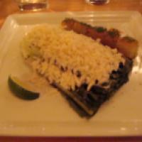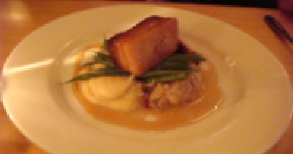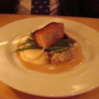 My companion's smoked pork tenderloin dish was served with crsipy pork belly, an apple-parsnip puree and a maple gastrique. Having expanded my cooking vocabulary way back while reviewing the Twisted Fork restaurant, I now knew what a gastrique is - a reduction of wine or vineagr with sugar and sometimes added fruit. In this case I guess it would have been maple syrup or something similar.